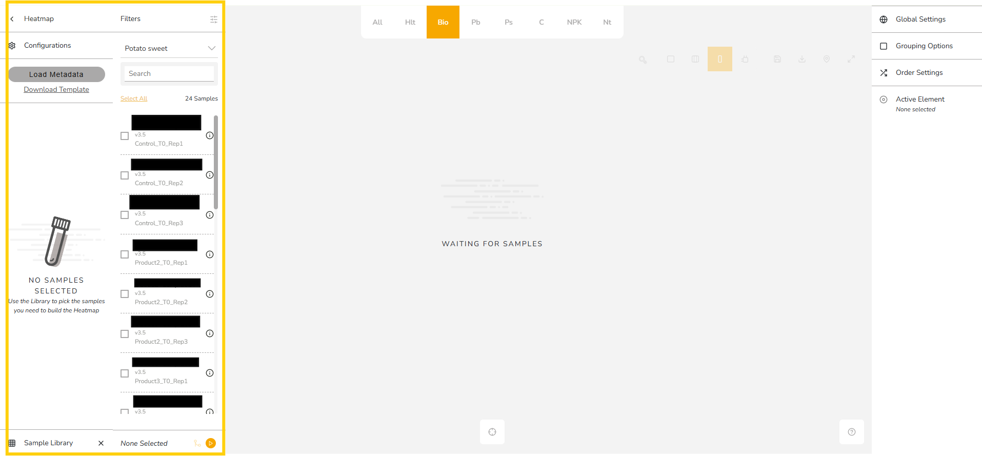 - On the left side, you can select the number of samples you want to analyze (e.g., “10 samples”). Click on the number next to ‘Sample Library’ to see your samples.