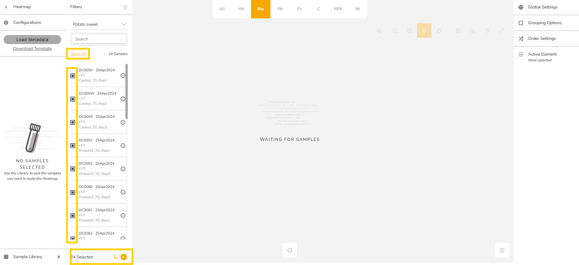 - Click Select All or manually choose specific samples.