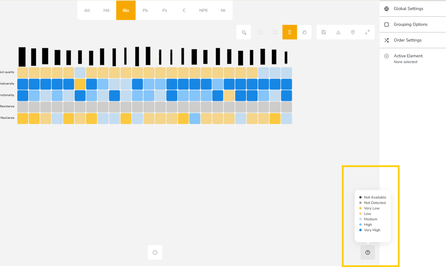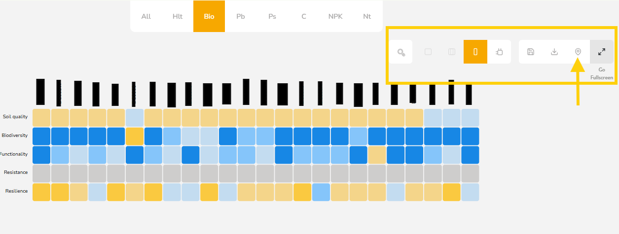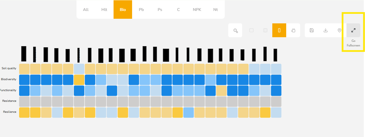 - Bio (Biosustainability) – Show indexes such as soil quality, biodiversity, and functionality.